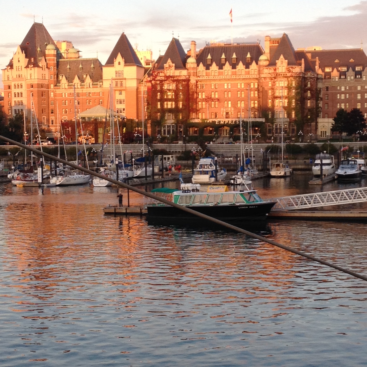 We arrived, went through customs and passport control and walked out of the building just in time to catch the sunset on the Empress Hotel. The Empress is famous for their High Tea. Alonda wants Jim to take her on a seaplane flight from Seattle to Victoria to have High Tea at the Empress and then fly back to Seattle for her birthday.